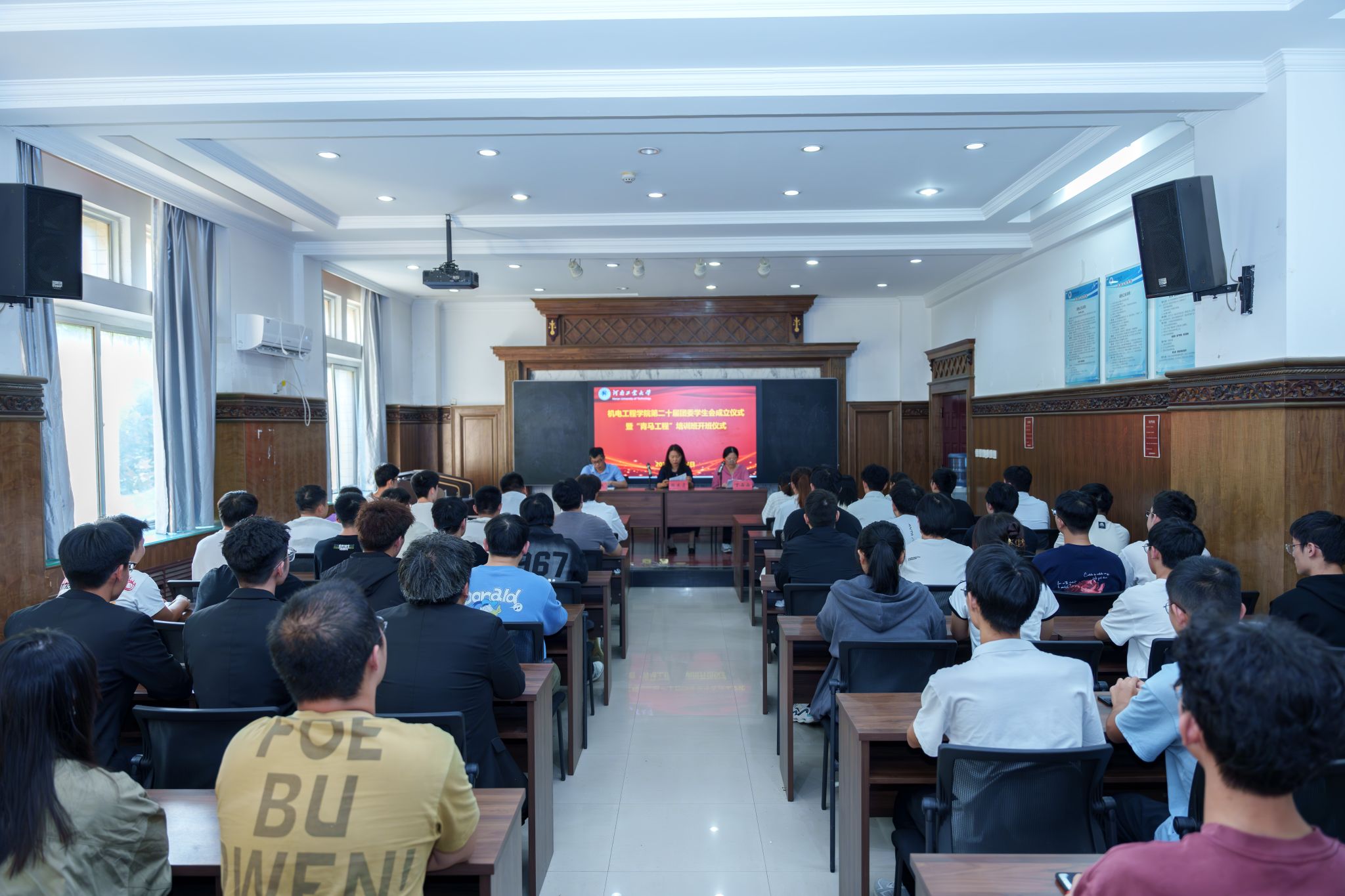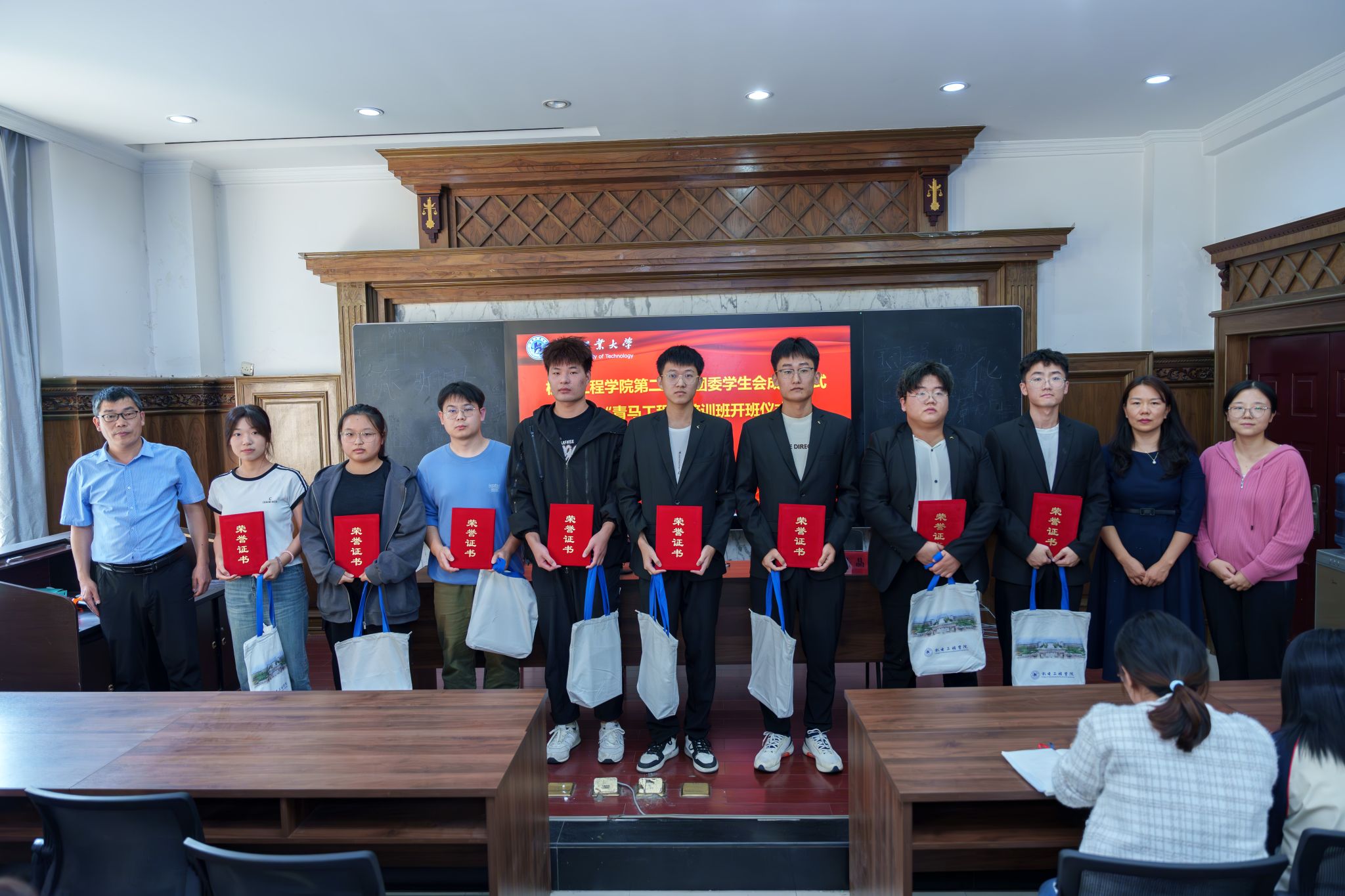 在7307举办第二十届团委学生会成立大会暨“青马工程”培训班开班典礼。党委副书记张东霞、学工办主任刘伟杰、全体辅导员、学生会和新媒体全体成员参加此次会议。会议由团委副书记丁晶晶主持。