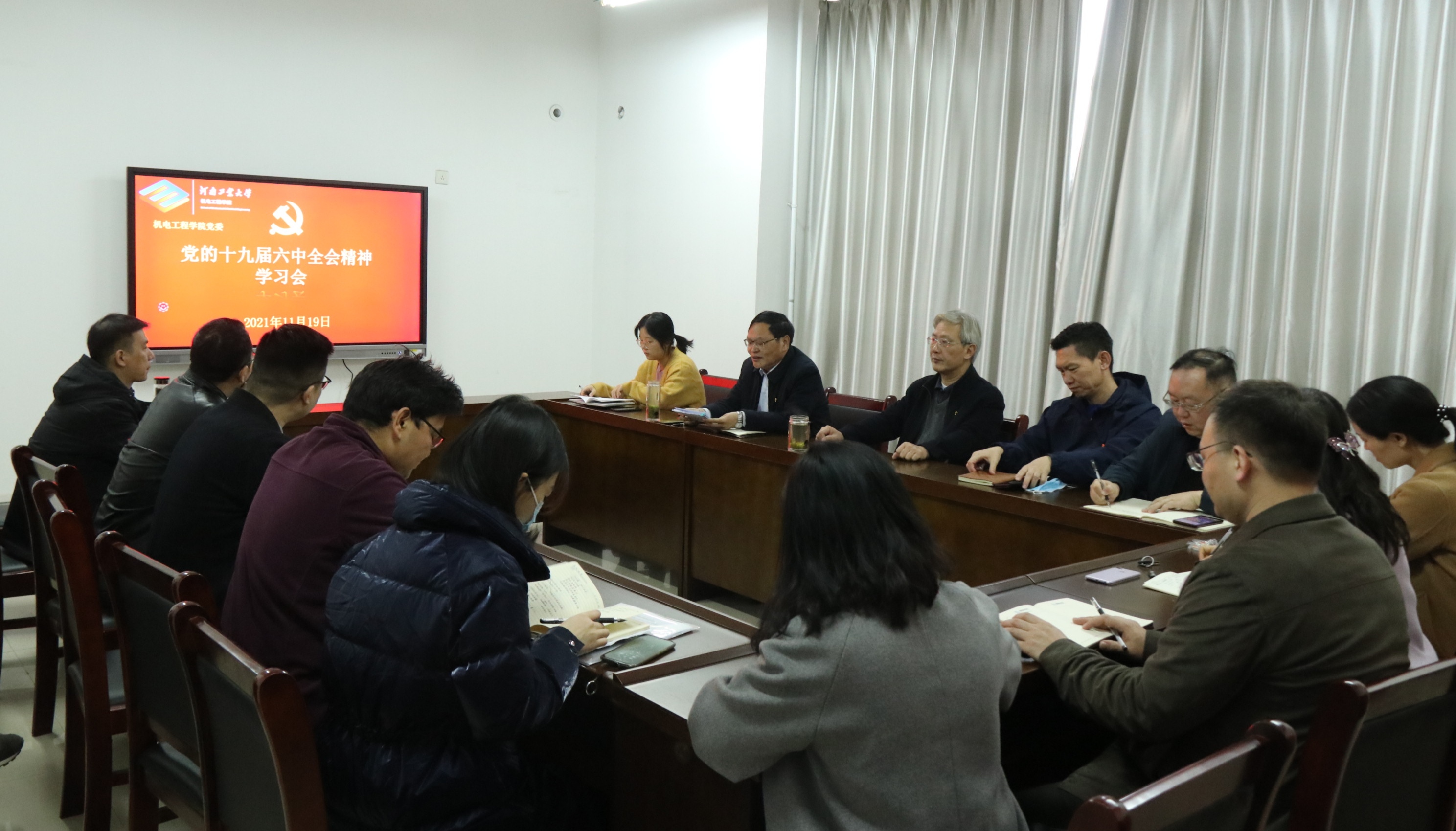 在7336会议室召开党委理论学习中心组学习扩大会,专题学习十九届六中全会精神。亚洲av党委理论学习中心组成员、师生党支部书记参加学习。亚洲av党委书记谭长福主持学习会。