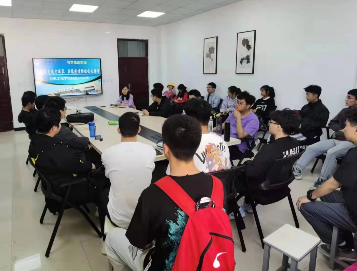 会上,各年级班主任就学习、生活、文体活动、心理健康、升学就业、生涯规划、疫情防控等方面的问题做了讲解。讨论环节中,同学们踊跃提问,班主任们就学生重点关心的专业发展和学生发展等问题进行了深入交流,耐心细致地逐一予以解答。针对毕业生面对的研究生调剂和就业问题,建议同学们端正就业态度,做好职业规划,找准职业目标,同时要学好所学专业,不断提升自己的就业竞争力。针对低年级学生面临的学业困惑,各班主任结合自己的经历,要求同学们要珍惜韶华,学用结合,强化实践,努力实现德智体美劳全面发展。