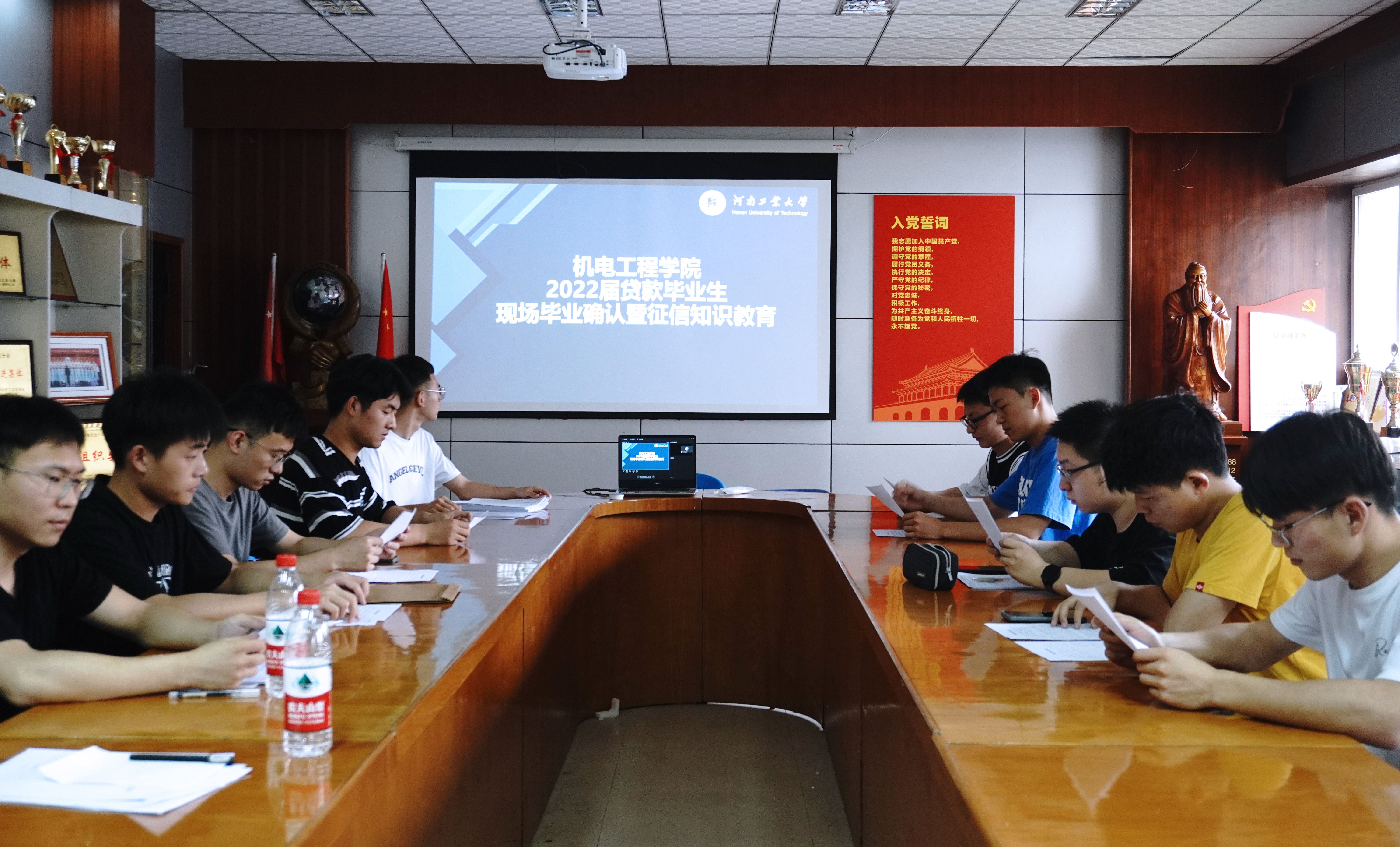 会上,刘伟杰首先对本届毕业生表达了美好祝愿,随后,他向贷款毕业生详细讲解了国家高校助学贷款相关政策及还款的具体流程,提醒贷款毕业生要按时查询系统并诚信还款。赵琳琳通过分析具体的失信案例向贷款毕业生强调良好征信的重要性,提醒学生要怀有一颗诚实的心,用信用去坚守人生的底线。