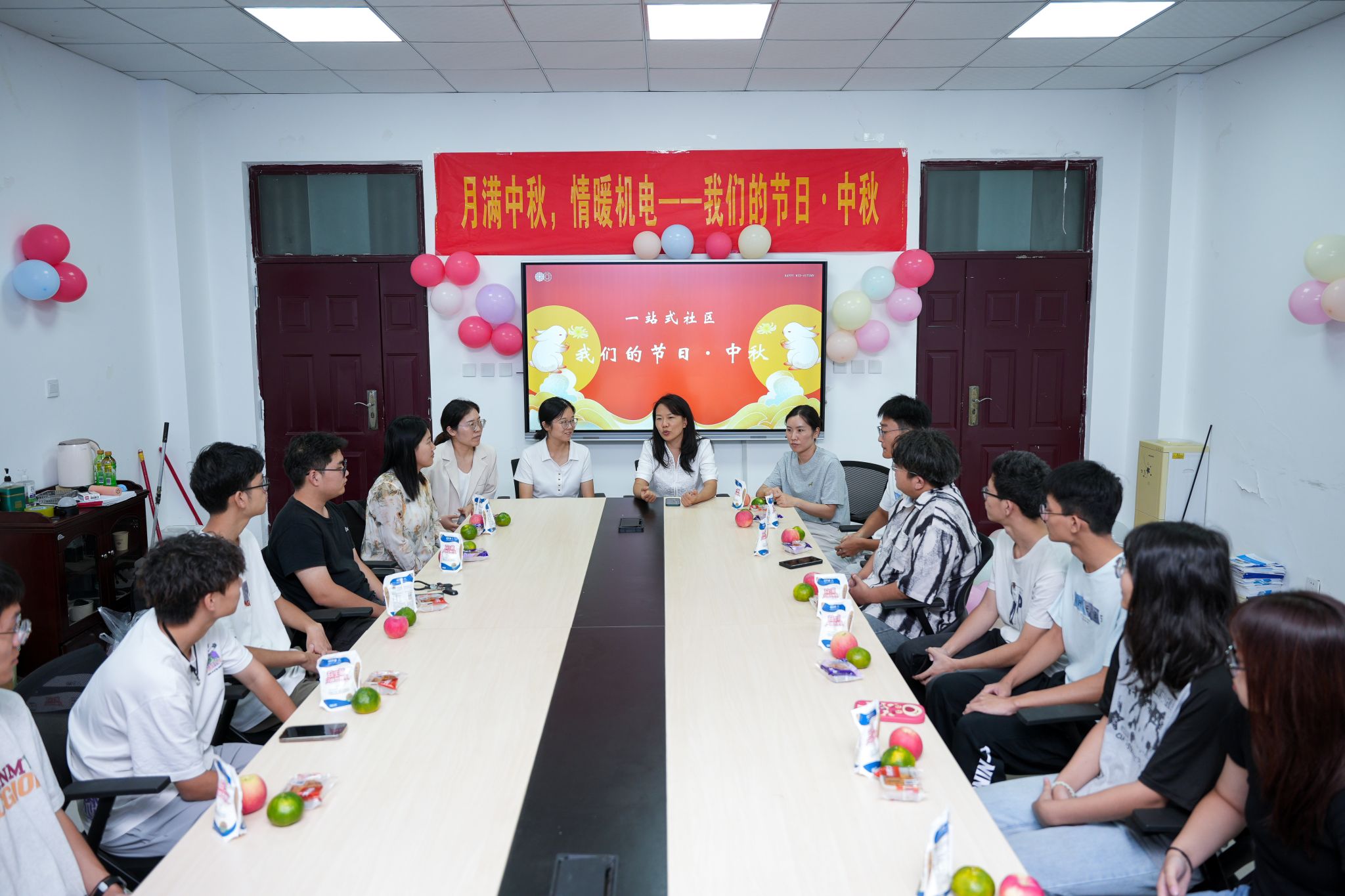 于9月14日晚,在亚洲av7123会议室举办一站式社区“月满中秋,情暖机电——我们的节日·中秋”活动。亚洲av党委副书记张东霞、辅导员、留校学生代表参与了此次活动。