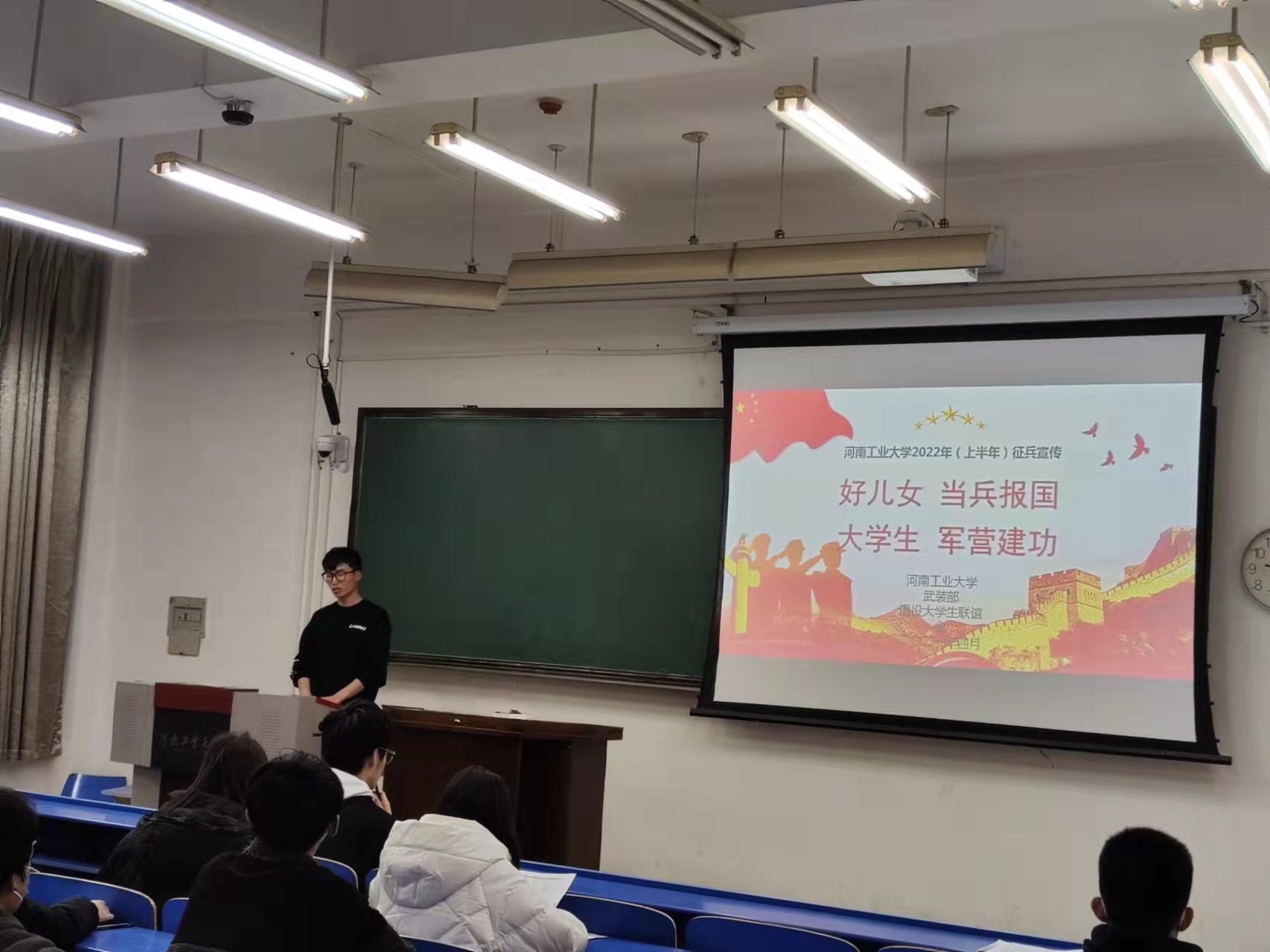 最后,退伍大学生鞠跃龙结合自身经历,讲述了参军入伍的相关事项,说明了大学生入伍的基本条件、服役期的优惠政策、退役后的优惠等,做了一场生动的参军入伍动员会。